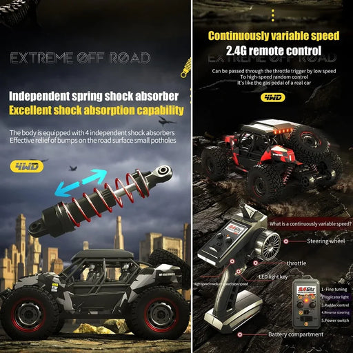 TOP RACING SERIES ADVENTURER 4WD 1/16 HIGH-SPEED RACING CAR. SCY16106-RED Get ready for an electrifying ride with the SCY-16106 RC car! This powe...